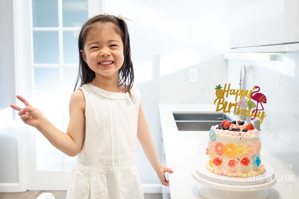 今年大女兒的四歲生日,原本想偷懶省略掉自己烤蛋糕的部分,沒想到記性好的大女兒卻自己提起了她生日要烤蛋糕的事,於是我們仍按照傳統一起起個大早,烤了她的生日蛋糕,而她也能自己完成大部分的烘培步驟。